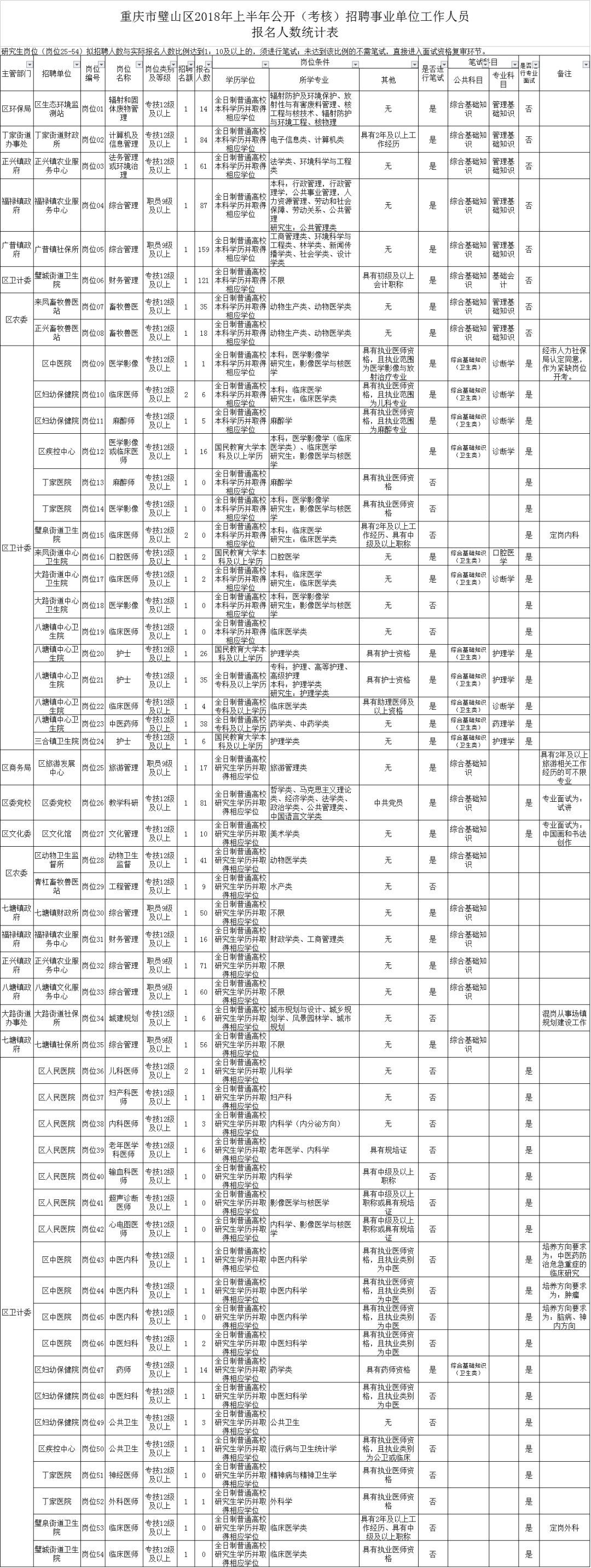 璧山2018上半年事业单位报考1173人,12个岗位无人报考
