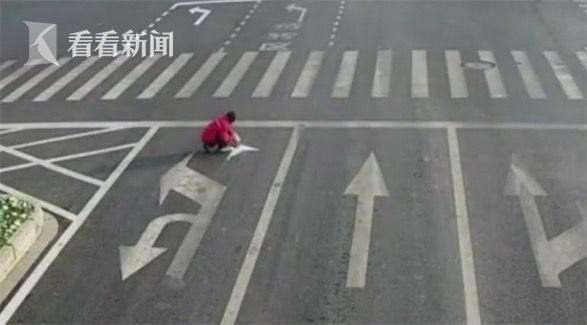 年度最强PS!嫌回家路堵 男子竟然在马路上把车道线涂改了